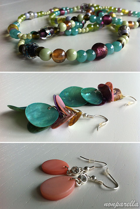 Die superlange Perlenkette zog mich einfach magisch an, die Farben Mädels, die Farben! Und für 4€ musste ich in der Tat nicht länger überlegen. Farblich passend dazu die wunderbaren Perlmutt-Ohrhänger für sage und schreibe 2€. Werde ich aber ziemlich sicher nicht zusammen tragen, das wäre dann doch too much. Letztere rosakorallene Ohrhänger waren zugegebenermaßen nicht im Sale, sind aber auch nur die hälfte eines Zweierpacks für 5,95€ welches ich mir mit meiner besten Freundin geteilt habe. Sie hat die lilafarbenen bekommen.