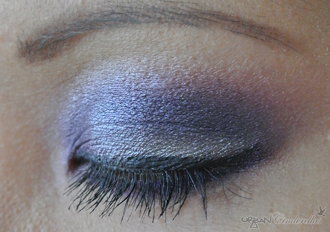 Und endlich der dritte Palettenlook mit der Sleek Shangri-La Collection Respect Palette. Da ich mich mit den orangetönen der Palette nicht so anfreunden kann, wieder etwas in lila-violett. Die Hauptakteure sind James Brown (schimmernder Braunton mit lilastich) und Vandellas (dunkles violett). Zum Verblenden habe ich außerdem Motown Mink (ockerbraun) verwendet.