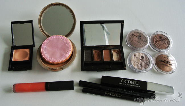 Ansonsten bestand meine Schminkroutine aus Concealer (die fiese Camouflage Cream von Artdeco), Puder, matte (Artdeco) oder schimmernde (Essence), bräunliche Lidschatten, wasserfestem Kajal für den unteren Wimpernkranz, Liquidliner für den oberen Wimpernkranz, Mascara und Lipgloss. Augenbrauen nachziehen kam mir irgendwie nie in den Sinn und Blush besaß ich genau einen (ebenfalls von Artdeco) und dieser wurde auch nur zu besonderen Anlässen verwendet.