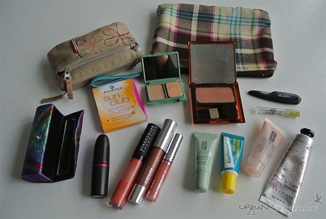 Wow, ganz schön viel Zeug was ich da mit mir herum schleppe. Ich bilde mir aber ein, dass ich wirklich auf nichts davon verzichten kann. Wobei – braucht Frau wirklich 6 Lippenprodukte? ;)