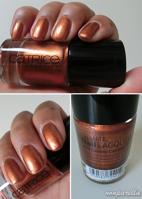 Der “Copper Cabana” (schon wieder ein tolles Wortspiel) aus der neuen Catrice Kollektion ist wirklich ganz nach meinem Geschmack. Ein echt schöner kupferfarbener Metallic-Lack der wie ich finde ganz wunderbar zu meiner Hautfarbe passt.