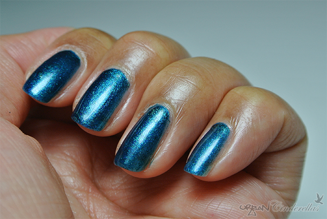 Bluey ist jetzt nicht direkt ein Glitzerlack so wie es die Flasche zu vermuten vermag, sondern eher ein Schimmerlack. Er hat eine