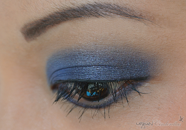 Für mein erstes AMU habe ich ihn mit Inglot 451, einem dunklen blaustichigem grau mit einem silbernen Schimmer und einem Pearlfinish im Außenwinkel. Verblendet wurde wie so oft mit Urban Decay Naked: