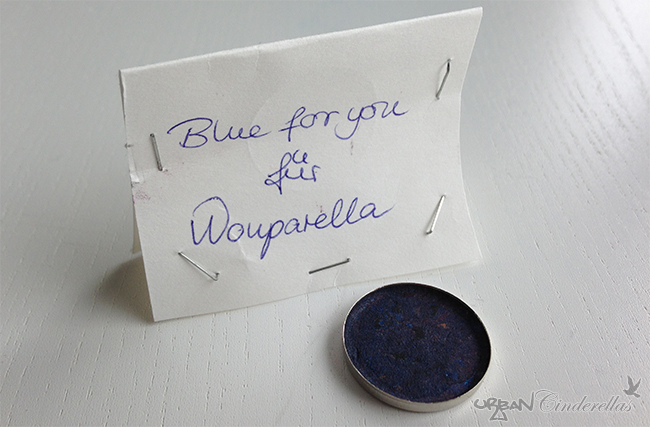 mischt und presst ja wie mittlerweile bekannt ist aus ihren drölfzig verschiedenen Pigmenten gerne Lidschatten selbst zusammen. Vor ein paar Wochen hat sie bei Twitter welche “verlost” und ich war eine der glücklichen die einen persönlich von Isa kreierten Lidschatten gewonnen hat.