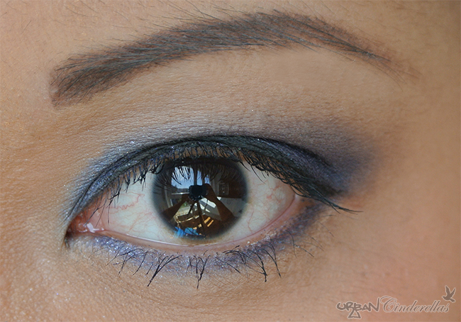 Für mein erstes AMU habe ich ihn mit Inglot 451, einem dunklen blaustichigem grau mit einem silbernen Schimmer und einem Pearlfinish im Außenwinkel. Verblendet wurde wie so oft mit Urban Decay Naked: